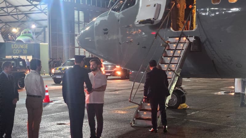 Y después de un segundo tramo de vuelo en el que ni Bachelet ni Boric se dejaron ver y en un destino final que recibió a los chilenos con 22° de temperatura y la humedad propia de una ciudad que funciona como puerta de entrada del Amazonas, el avión se posicionó al frente del Primer Escuadrón de Transporte Aéreo del Aeropuerto de Belém, donde había un lounge especial para las personas que van llegando a la COP30. Ahí el Mandatario fue recibido por oficiales brasileños y de inmediato se subió a un vehículo para trasladarse junto a una caravana de cuatro autos y siete mini buses para el resto de la comitiva.