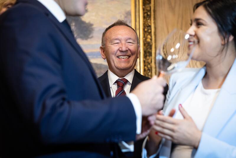 En su intervención, el Mandatario habló de política internacional, pero también anécdotas históricas que han unido ambos países, por ejemplo, el Carmenere, cepa de origen francés presuntamente extinta por una plaga de filoxera en 1867, que se redescubrió en Chile en 1994. También mencionó que todas las ciudades de Chile tienen una calle que recuerda a la conspiración independentista de los tres Antonios -grupo conformado por dos franceses y un criollo a fines del Siglo XVIII- antes del proceso emancipatorio de 1810.