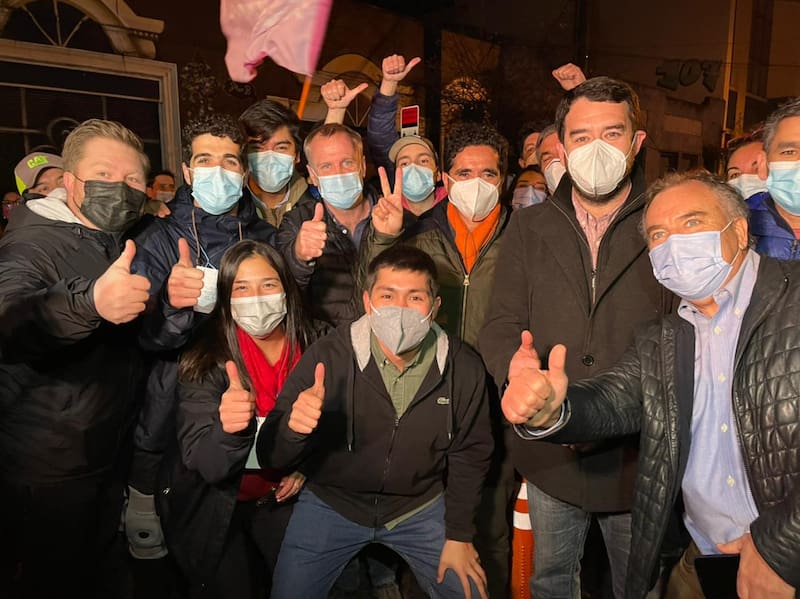Apenas votó esta mañana en el Colegio Compañía de María de Apoquindo, Sebastián Sichel -candidato presidencial independiente de Chile Vamos- se trasladó a La Araucanía para acompañar a Rivas en la espera de los resultados que esta noche confirmaron su victoria.