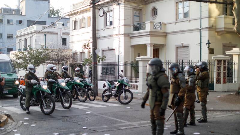 En las cercanías, se encuentran las dependencias de la Brigada Investigadora de Delitos Contra los Derechos Humanos de la PDI, inmueble que fue vandalizado con rayados y atacado con elementos contundentes, como piedras y otros objetos.