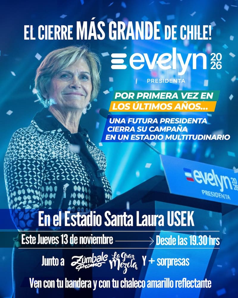 Hasta el estadio Santa Laura, en la comuna de Independencia, llegará la abanderada de Chile Vamos, Demócratas y Amarillos, Evelyn Matthei, el próximo jueves 13 de noviembre a las 19.30 horas para cerrar su campaña de cara a la primera vuelta presidencial.