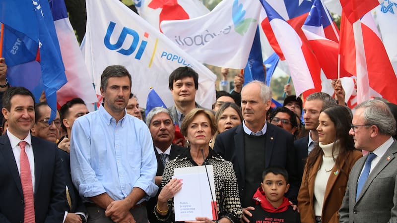 Acompañada de los presidentes de los tres partidos de Chile Vamos, Evelyn Matthei acudió este lunes hasta las oficinas del Servicio Electoral (Servel) para inscribir su precandidatura.