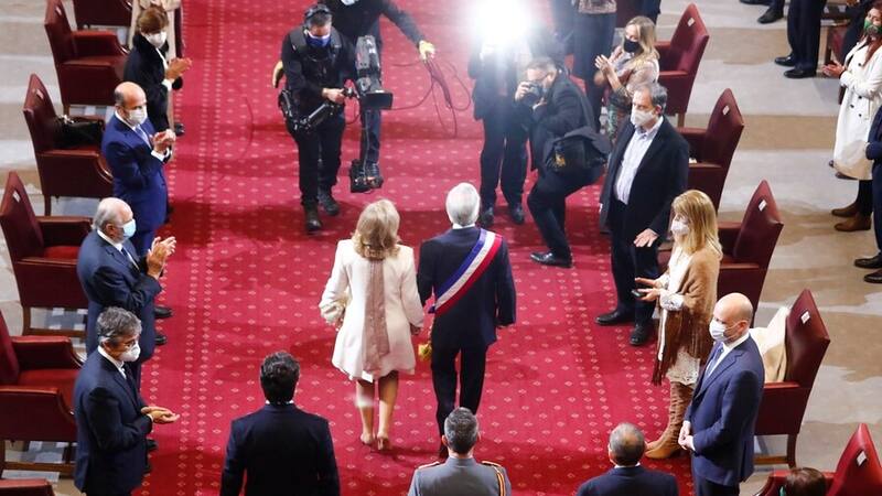 En la sede legislativa en Valparaíso, donde el Primer Mandatario se sacó su mascarilla para realizar su alocución, estuvieron además otras personalidades como el presidente de la Corte Suprema, Guillermo Silva; la presidenta del Tribunal Constitucional, María Teresa Brahm; y el titular del consejo directivo del Servel, Patricio Santamaría.