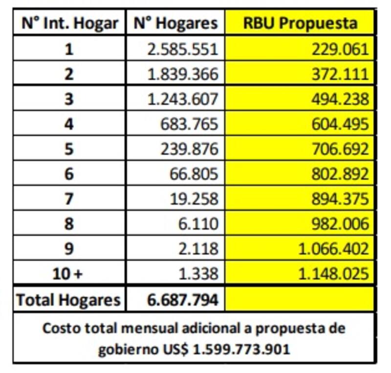 Tal como adelantó La Tercera, en materia de propuestas, la oposición apuesta a avanzar en una Renta Básica Universal (RBU) para las familias del Registro Social de Hogares, que supere la línea de la pobreza, y que sea de $229.061 para un hogar unipersonal, y llegue hasta $604.495 en un hogar con cuatro miembros. Además de una batería de medidas para las Pymes, que incluye US$3.000 millones en subsidios en diversas líneas de financiamiento.