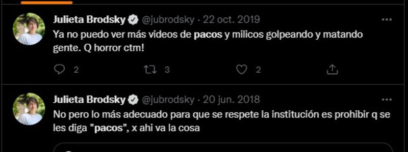 “Nosotros como Gobierno respaldamos completamente a Carabineros. Carabineros cumple una función fundamental en nuestra sociedad, esos tuits fueron dichos en un contexto específico de mucha frustración, lo digo desde un nivel más personal, hay eventos concretos que ocurrieron esos días que nos generaron molestia y frustración”, explicó el secretario de Estado al ser consultado por la prensa.