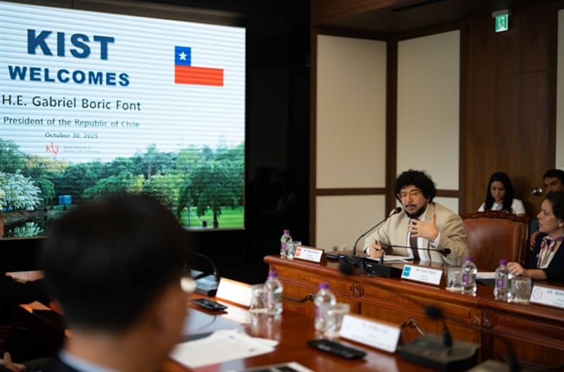 Otro viaje donde estuvo presente fue en la gira que Boric encabezó en Corea del Sur en octubre del año pasado. Allí llegó a exponer en la visita del presidente al Instituto de Ciencia y Tecnología de Corea del Sur (KIST, por sus siglas en inglés), jornada en la que el mandatario, entre muchas cosas, manejó un robot con forma de perro.