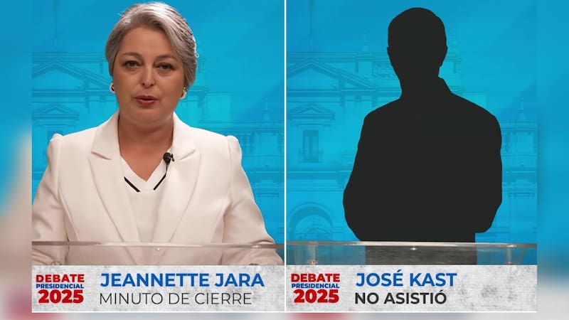 La candidata de Unidad por Chile y la Democracia Cristiana, Jeannette Jara (PC), elevó este domingo la tensión del balotaje al emplazar directamente a su rival, José Antonio Kast (Rep.), luego de que el líder republicano decidiera no asistir al debate presidencial organizado por Mega para las 22.00 horas, instancia que finalmente no se realizó debido a su ausencia.