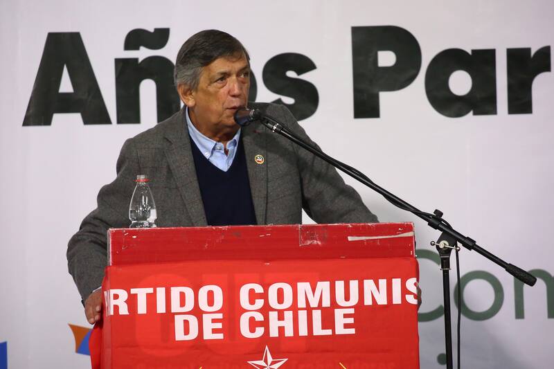 En su discurso por el aniversario de la colectividad, el timonel del PC partió leyendo un mensaje de la expresidenta Michelle Bachelet, militante del Partido Socialista, apelando a la unidad de las fuerzas del oficialismo.