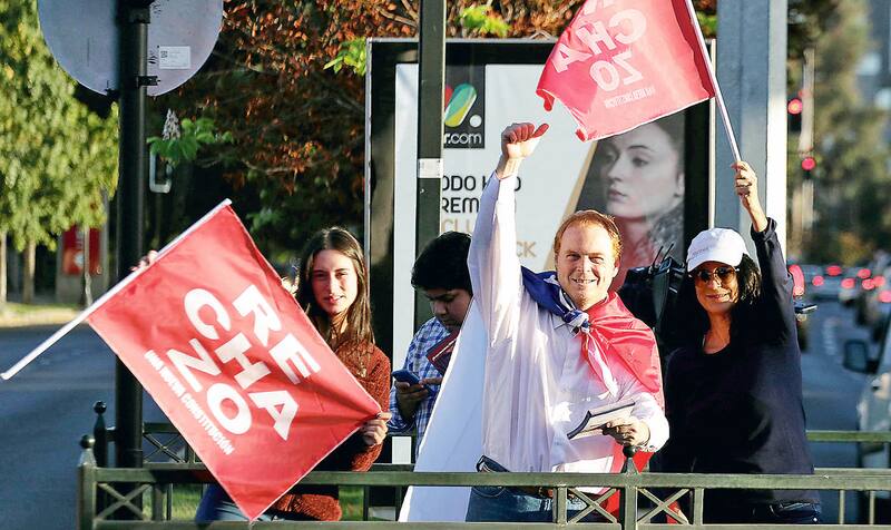 Uno de los primeros fue Renovación Nacional, a través de su presidente, Mario Desbordes, quien llegó hasta la sede del partido para dar a conocer detalles de la campaña institucional. Y es que RN decidió avalar ambas posturas y dar “libertad de acción” a sus militantes, pese a que existe una mayoría por el “rechazo”.