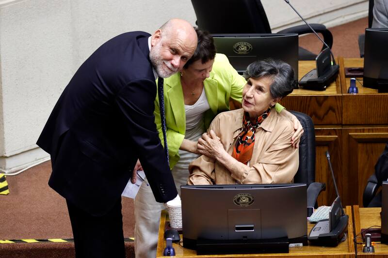 Cuando la senadora ya entró a la sala, se acercaron a hablar con ella los ministros Álvaro Elizalde (Segpres) y Carolina Tohá (Interior).