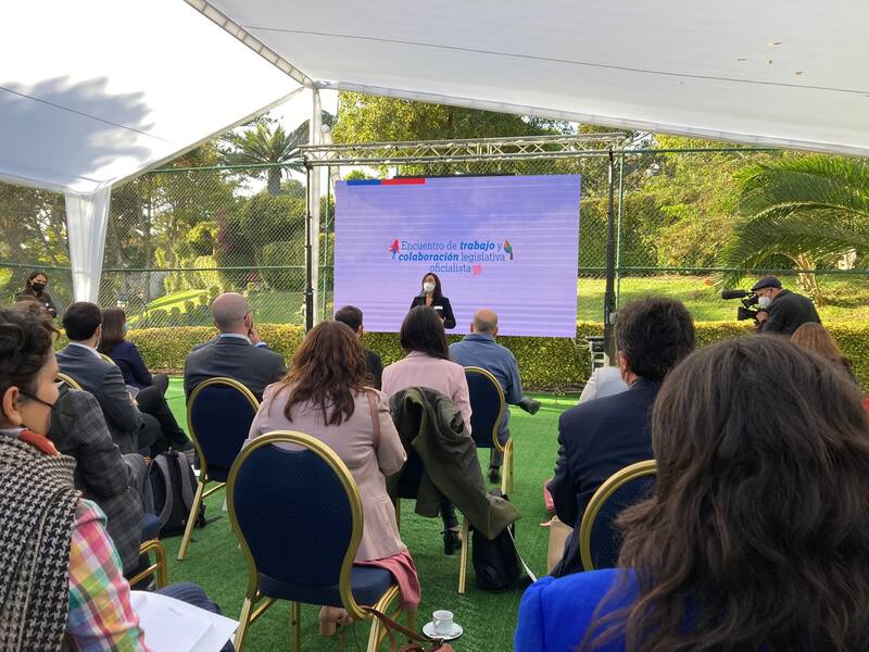 “Estamos en pleno desarrollo de una jornada de encuentro, de diálogo y de trabajo de colaboración legislativa, con todos los parlamentarios y parlamentarias oficialistas que ha sido muy exitosa. La primera jornada que hemos realizado con ellos, inédita también, con todo el gabinete, con la presencia de nuestro Presidente, donde cada una de las bancadas del Congreso ha podido intervenir, expresar no solo su compromiso con este proyecto de transformación si no que también consolidar y fortalecer nuestro trabajo en materia legislativa”.