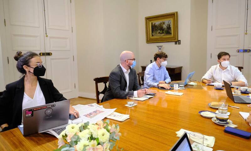Luego de la entrevista, Boric dio paso a liderar la primera reunión de Comité Político en el Palacio con los ministros del Interior, Izkia Siches, Hacienda, Mario Marcel, Segegob, Camila Vallejo, Segpres, Giorgio Jackson y de la Mujer, Antonia Orellana.