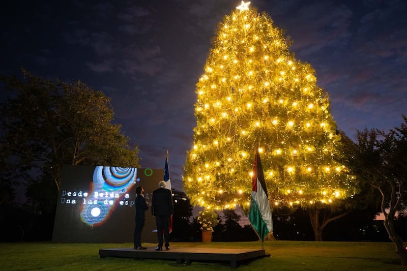 La noche de este viernes, el Presidente Gabriel Boric concurrió a la ceremonia “Navidad Palestina: desde Belén a Chile, una luz de esperanza”, evento organizado todos los años por la Comunidad Palestina en Chile.