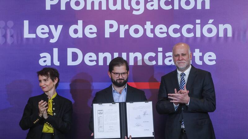 Desde el Salón Montt-Varas en el Palacio de La Moneda, la mañana de este jueves el Presidente Gabriel Boric promulgó la Ley de Protección al Denunciante, normativa que establece un estatuto de protección a funcionarios que prestan servicios a instituciones del Estado y que denuncien actos contra la probidad administrativa.