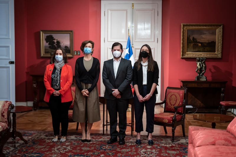 La mañana de este miércoles, el Presidente Gabriel Boric sostuvo una reunión protocolar en el Palacio de La Moneda con la directora general de la Unesco, Audrey Azoulay y el subdirector General de Cultura del mismo organismo, Ernesto Ottone.