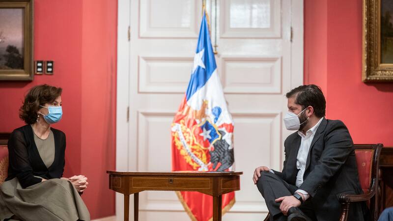 Por Daniela SilvaPresidente Gabriel Boric sostiene reunión protocolar con directora general de la Unesco