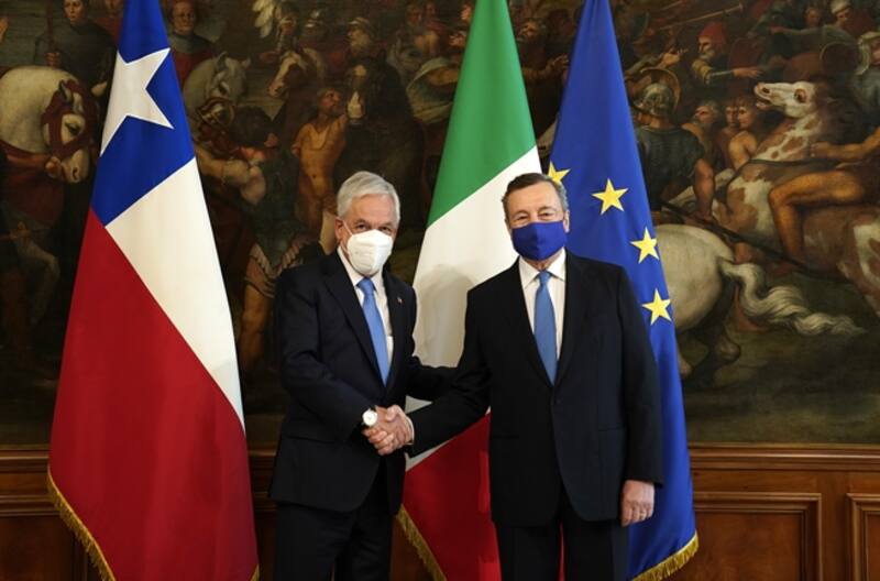A las 10 horas Piñera se reunió con el Presidente del Consejo de Ministros de Italia, Mario Draghi en el Palacio Chigi. En la cita, las autoridades dialogaron sobre la profundización del comercio bilateral en el marco de la recuperación económica pospandemia y la preparación de la COP-26 en Glasgow, donde Italia tiene la co-presidencia.