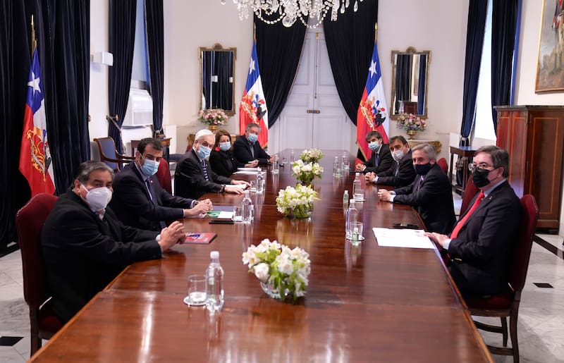 Esta reunión, que se realiza en La Moneda y donde también participa el ministro del Interior, Rodrigo Delgado, se enmarca en la serie de encuentros que el Mandatario está sosteniendo en la búsqueda de “mínimos comunes” que contempla una serie de ayudas económicas directas para las familias y las pymes.
