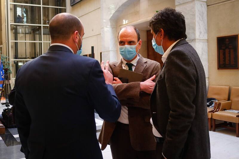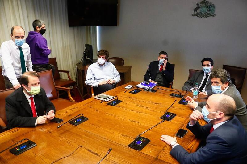 Los tres ministro que llegaron a la sede del Parlamento sostuvieron conversaciones en privado con parte de la bancada de RN, instancia que debió ser fiscalizada por miembros de la corporación debido a las denuncias de la oposición de que no se estaban cumpliendo las normas sanitarias de distanciamiento social debido al número de personas reunidas.