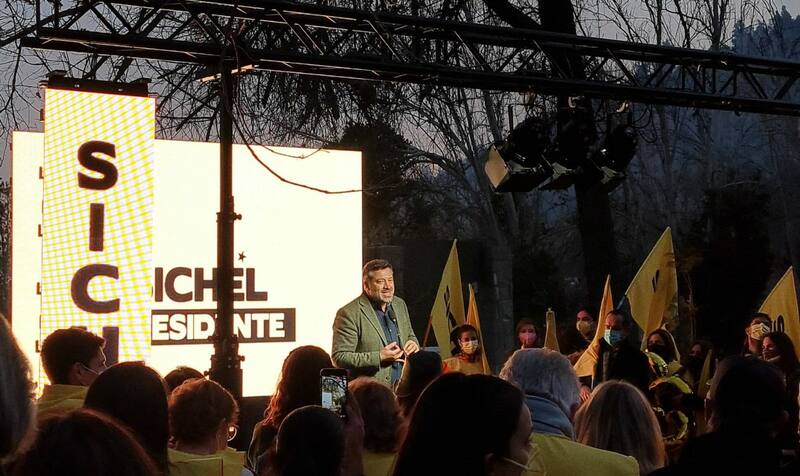 El candidato independiente de Chile Vamos y exministro de Desarrollo Social, Sebastián Sichel, comenzó con un banderazo en Av. Ossa y realizará su cierre de campaña en el Parque Metropolitano de Santiago sin entregar mayores detalles.