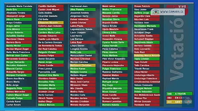 En tanto, los parlamentarios que rechazaron la iniciativa estuvieron encabezados por miembros de la oposición -Chile Vamos y Republicanos- y gran parte de los parlamentarios oficialistas.