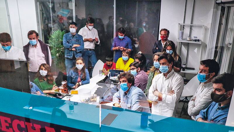 El presidente de Evópoli, Andrés Molina, tampoco fue al comando “oficial” y prefirió quedarse en la sede de Horizontal, el centro de estudios de su partido ubicado en calle Nevería, comuna de Las Condes. Francisco Undurraga, que en los últimos meses se había pasado del Apruebo al Rechazo, pasó a visitar un rato la sede del comando parlamentario, pero luego volvió con los suyos. Luciano Cruz-Coke, que también estaba por el Rechazo, no fue visto en el lugar.