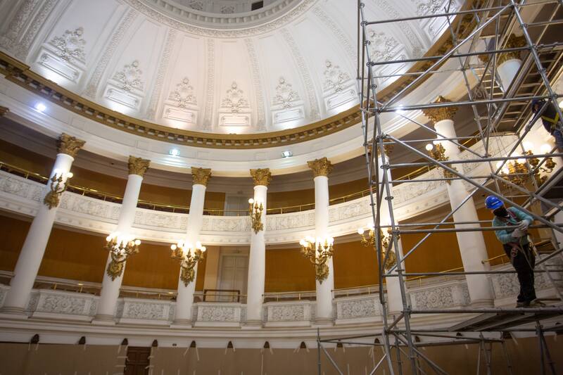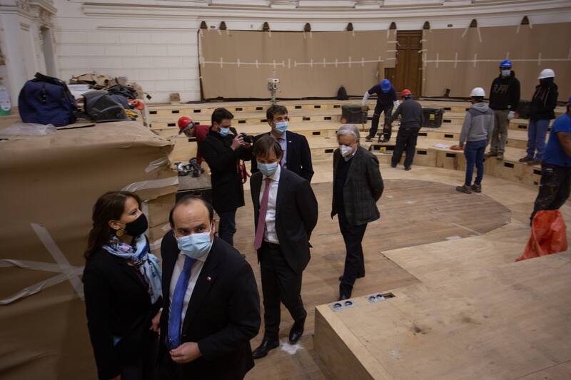 La construcción que albergó a ambas cámaras entre 1876 y 1973, dará lugar al trabajo de los 155 constituyentes -que serán elegidos en los comicios de este 15 y 16 de mayo- junto con el Palacio Pereira, recinto auxiliar para la Convención. Esta mañana el ministro Segpres junto al vicepresidente de la Cámara de Diputados, presentaron el avance de las obras de remodelación.