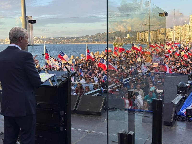 La noche de este jueves, en un podio antibalas, José Antonio Kast dio su discurso en el inicio de los actos de cierre de su campaña, desde Viña del Mar.