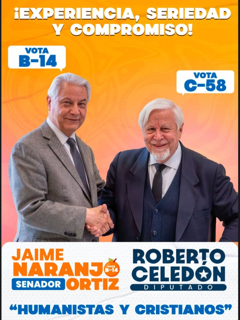 “Yo voy al Senado y Roberto al Congreso como diputado, porque creemos en la fuerza de la salud pública, la educación de calidad y el desarrollo de nuestras comunidades”, añade en la misma publicación, en que aparecen ambos dándose un apretón de manos y detallando la letra y el número de cada uno en la papeleta.