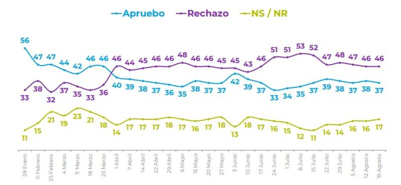 “Una caída del Apruebo viene desde la caída del Rechazo y no desde los indecisos que, para mí, más bien, son no electores. Lo que sí logró el Apruebo en la última semana es que la serie de actos sucesivos masivos que terminan en Santiago generaron un cambio de clima en favor del Apruebo, frente al vacío del Rechazo en la vía pública y en los actos, y eso ayuda”, aseveró.