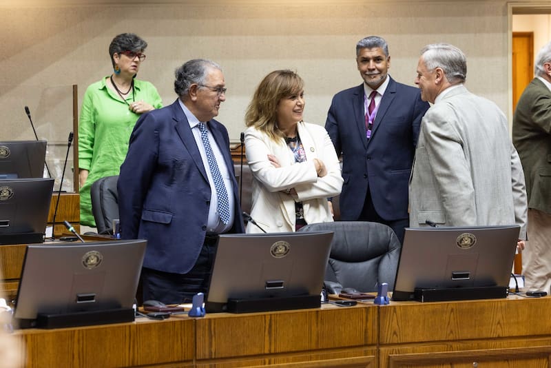 En medio de la sesión, hizo su ingreso el ministro del Interior, Álvaro Elizalde, PS, quien saludó uno por uno a los presentes. Al llegar al asiento de la senadora Luz Ebensperger (UDI), quien no logró la reelección tras ser desafiada por el diputado Renzo Trisotti (ex UDI, hoy republicano), Elizalde le dio un abrazo más efusivo. Con ella había compartido en 2022 en la mesa del Senado. Él fue presidente y ella vicepresidenta de la corporación. Ebensperger se veía de buen ánimo y a todos los que se le acercaban, les transmitía que no había ninguna desgracia que lamentar.