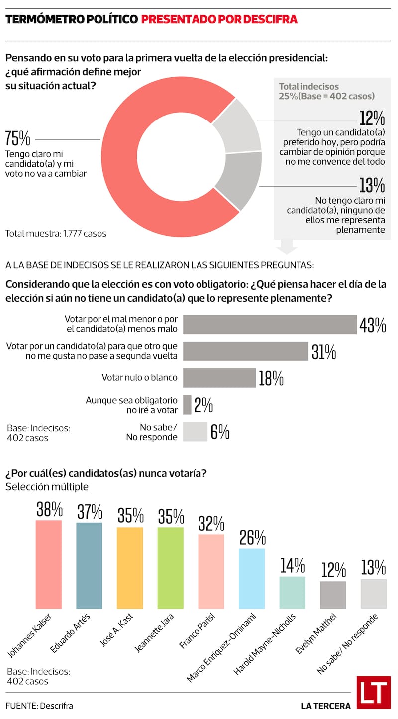 Sondeo Descifra: 43% de los indecisos votará por el candidato “menos malo” y 31% para que otro no pase a segunda vuelta