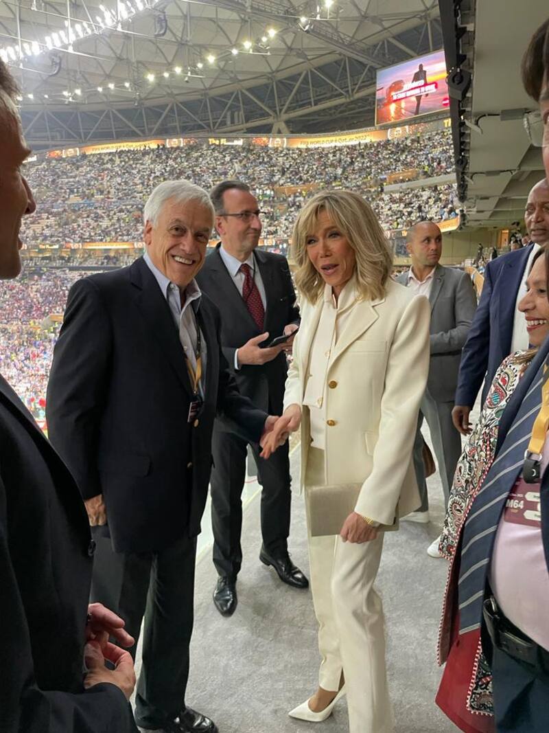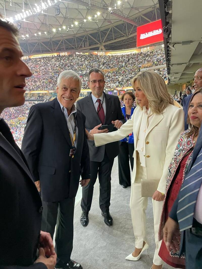 Con un traje de terno, llegó hasta el país del Medio Oriente el expresidente Sebastián Piñera, quien se encontró con el Mandatario de Francia, Emmanuel Macron, este último siendo captado en reiteradas ocasiones por las cámaras de la transmisión oficial.