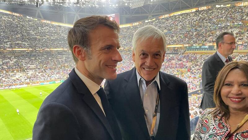 En el encuentro, el expresidente junto al jefe de Estado francés aprovecharon de tomarse unas fotografías juntos con un estadio lleno a sus espaldas, a la espera del desenlace más esperado del fútbol.