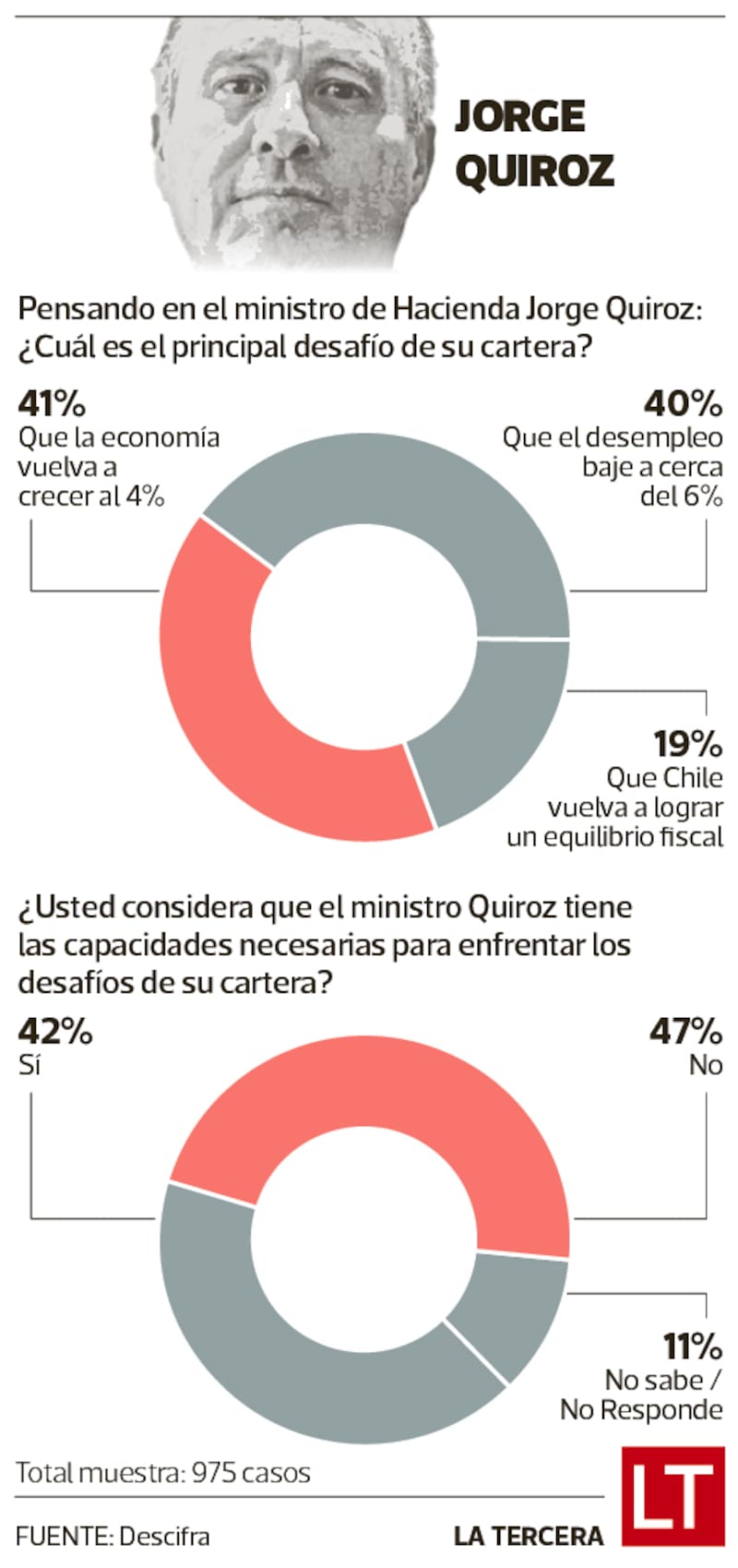 Quiroz -quien venía con la carga de ser sindicado por la oposición como un economista que había estado del lado de las empresas en casos de colusiones- entró pisando fuerte desde el primer día, anunciando un recorte del 3% parejo a los presupuestos de los 25 ministerios y reiterando que había recibido una dramática situación fiscal.