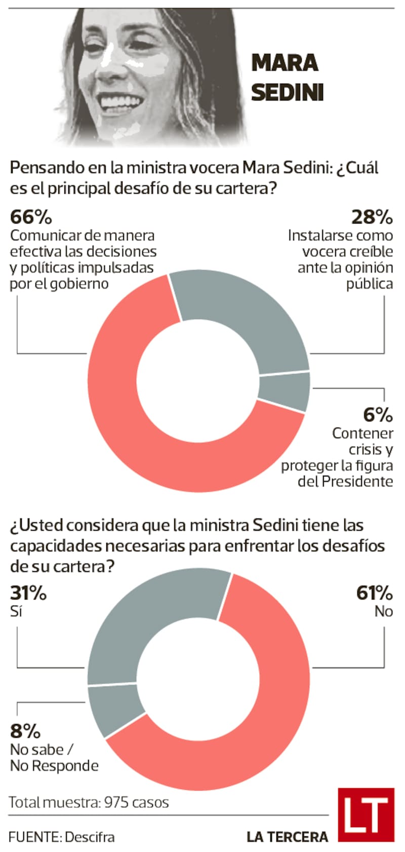 “El test de rendimiento ministerial permite combinar el impacto mediático de los ministros junto con su capacidad de controlar la agenda de su cartera”, señala Camilo Feres, director ejecutivo de Descifra. “De esta forma, obtenemos una medición que entrega datos de impacto y también de efectividad, lo que permite evaluar el rendimiento comunicacional de los miembros del gabinete”, agrega.