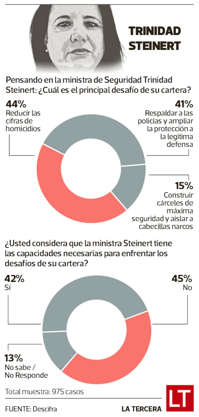La ministra de Seguridad Pública, María Trinidad Steinert, ha tenido una alta presencia en la prensa y en redes sociales este primer mes de gobierno, lo que a simple vista sería algo muy positivo. Más aún, en una administración que le da una especial importancia a las plataformas digitales.