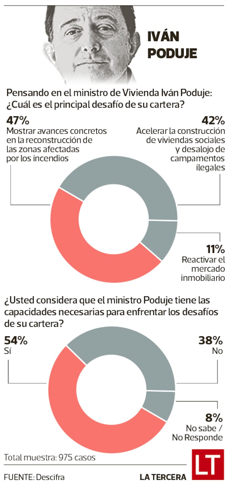 En las tareas del ministerio que lidera Poduje, los encuestados priorizan la reconstrucción de las zonas afectadas por los megaincendios en las regiones de Valparaíso y Biobío, y el aumento de soluciones habitacionales.