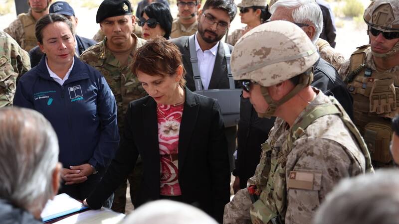 La ministra del Interior se refirió a la polémica por el uso de la fuerza por parte de los militares en el resguardo de la frontera, quienes deben seguir un protocolo antes de actuar. La jefa de gabinete enfatizó que "Chile no está en ninguna guerra", aunque respaldó el uso de las armas en los casos que sea absolutamente necesario.