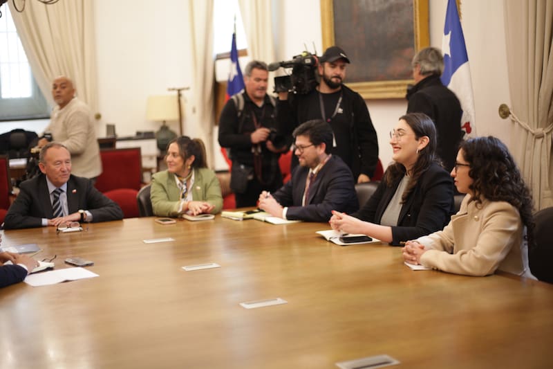 A la reunión en Palacio acudió la presidenta de la colectividad, Constanza Martínez, el senador Diego Ibáñez, y las diputadas y jefas de bancada Gael Yeomans y Emilia Schneider.