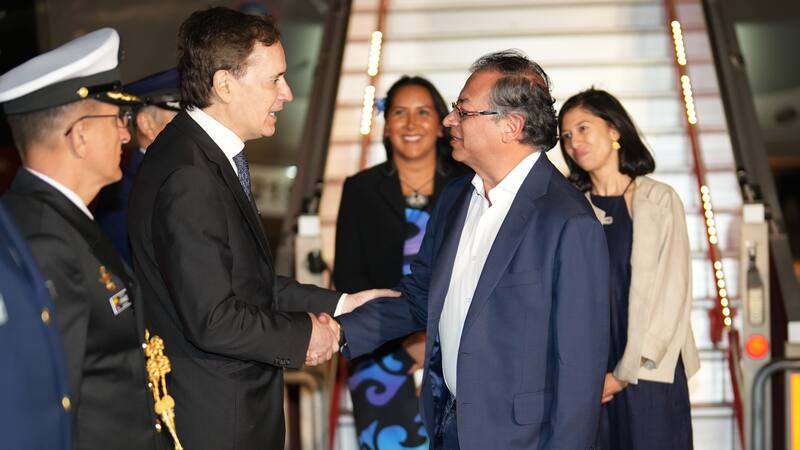 El mandatario colombiano aterrizó en el aeropuerto Arturo Merino Benítez de Santiago durante la madrugada de este lunes, para desplegar una agenda enfocada en temas económicos, cambio climático, entre otros. Entre sus actividades tiene contemplada, además, una reunión bilateral con el Presidente Gabriel Boric y encuentros con los distintos poderes del Estado.