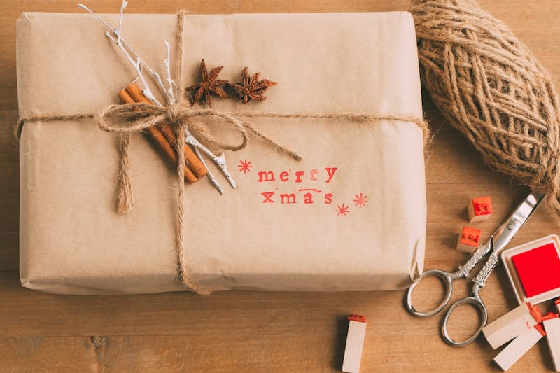 Si eres entusiasta de los DIY (hazlo-tú-mismo, por su sigla en inglés), una buena forma de darle un toque rústico a los obsequios es envolverlos con papel kraft —o papel café de embalaje— y enlazarlos con rafia o yute. También puedes añadir un dulce navideño, una flor, una ramita de tu jardín o incluso de canela. El resultado quedará digno de Pinterest y sin mayor inversión.
