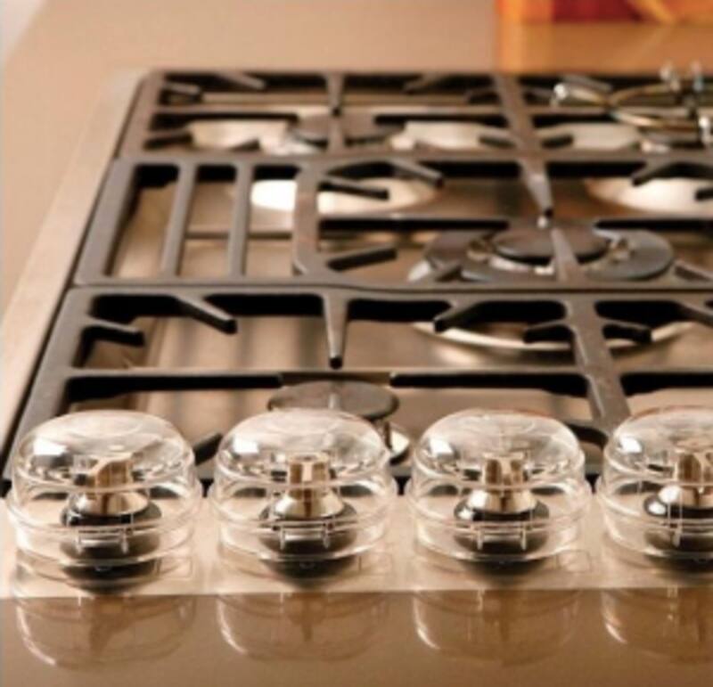 -Disposición de ollas. Cuando utilices tu cocina, procura mantener los mangos de cacerolas y sartenes hacia dentro, además de privilegiar los quemadores posteriores. Una gran solución son estos protectores de perillas Dreambaby, que impiden que los niños abran el gas de la cocina.