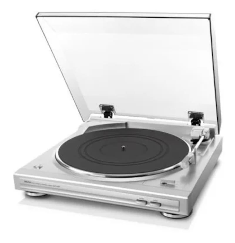 Otro modelo para empezar. Este nos lo sugirió DJ Spacio, de la banda nacional Cómo Asesinar a Felipes, en nuestra guía para comprar tu primer tocadiscos. Tiene tracción a correa, pero no cuenta con un preamplificador integrado. Esto significa que para escuchar en él debe pasar primero por un preamplificador o reciever con preamplificación integrada, que se encargue de levantar la señal y generar el sonido que luego emitirán los parlantes. Reproduce en dos velocidades: 33-1/3 y 45 rpm y cuenta con un brazo fijo, no ajustable ni con anti-skating. Precio anterior: $199.990.