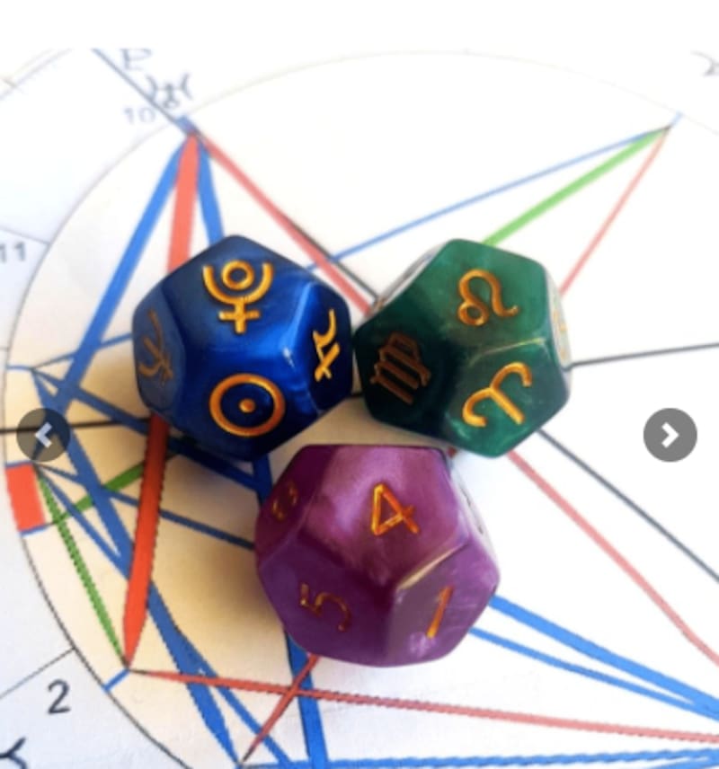 “Es un juego tipo oráculo, muy simple”, dice Dani Tarot. “Se compone de tres dados y sirve tanto para acercarte de a poco al mundo de la astrología, o para practicar en caso de que estés estudiando el tema”. Según ella, sirve también para resolver dudas concretas, “como cuando quieras saber el ‘qué’ del tema, el ‘cómo’ se siente o influye, y el ‘dónde’ afecta en tu vida actual”.