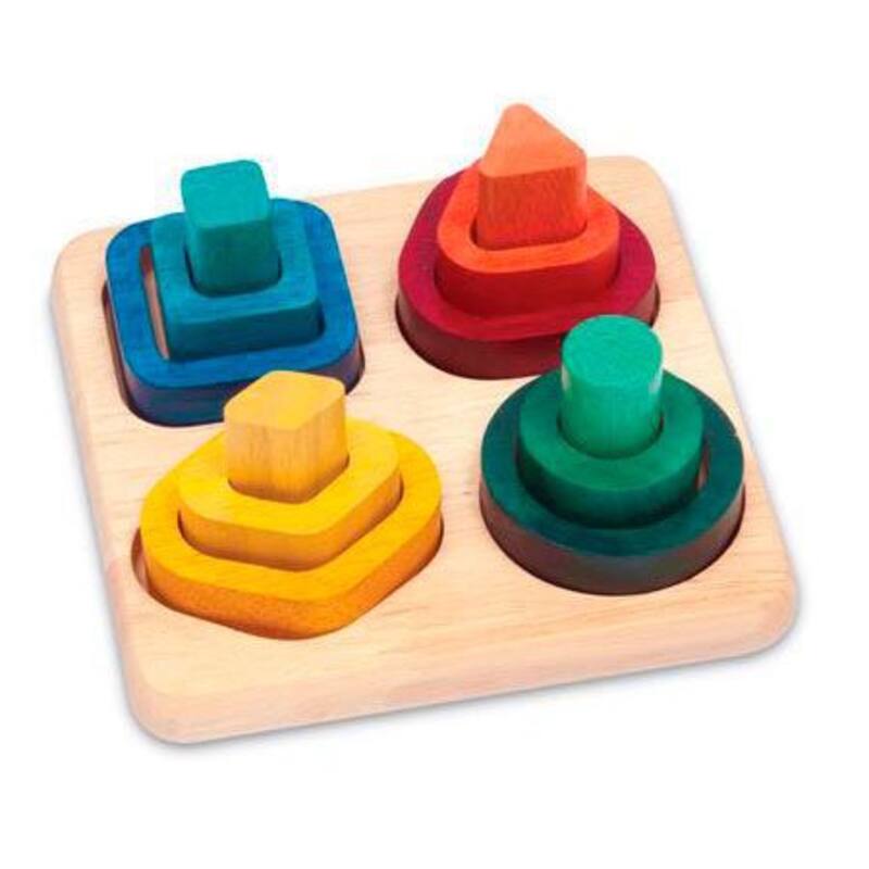 Este juego incluye 12 formas geométricas distintas y una bandeja para guardarlas. Aunque simple, es una gran herramienta para que los niños y niñas pequeños comiencen a reforzar la distinción de colores, las relaciones de forma y tamaño, y mejorar la coordinación mano ojo. Incluye una guía con actividades sugeridas. Tiene un 50% de descuento.