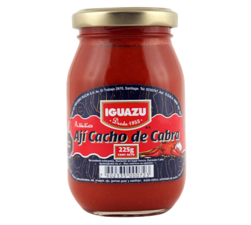No es tan antiguo pero sí lleva varias décadas en el mercado nacional. Es algo así como lo que antes llamábamos pebre de invierno; es decir, un pebre con cebolla, cilantro y, a falta de tomates, una buena cantidad de salsa de ají rojo. Eso es lo que consigue este ají ahora, pero en clave industrial. Muchos preferimos preparar nuestro propio pebre, pero aún así no son pocos los que se han hecho fan de este producto. Funciona muy bien agregado a preparaciones calientes, como unos porotos con riendas, unas papas cocidas o incluso el consomé. Dato aparte: es altamente apreciado como regalo por los chilenos que viven en el extranjero.