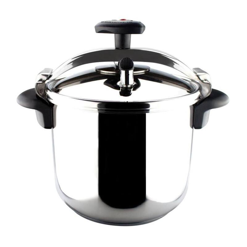 Nunca nos cansaremos de promover las ollas a presión: ahorran tiempo, energía y dinero, sirven para cocinar carnes, guisos y verduras, y en ellas las preparaciones suelen preservar mejor sus sabores y propiedades. Esta es para una familia grande: en sus 10 litros pueden caber varias porciones de carne mechada o garbanzos. Precio normal: $89.990.