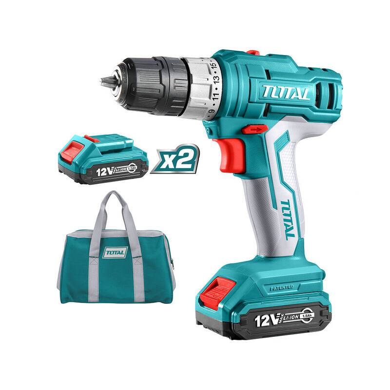 Taladro inalámbrico Total 10 mm 12V (incluye dos baterías y cargador) - 41%