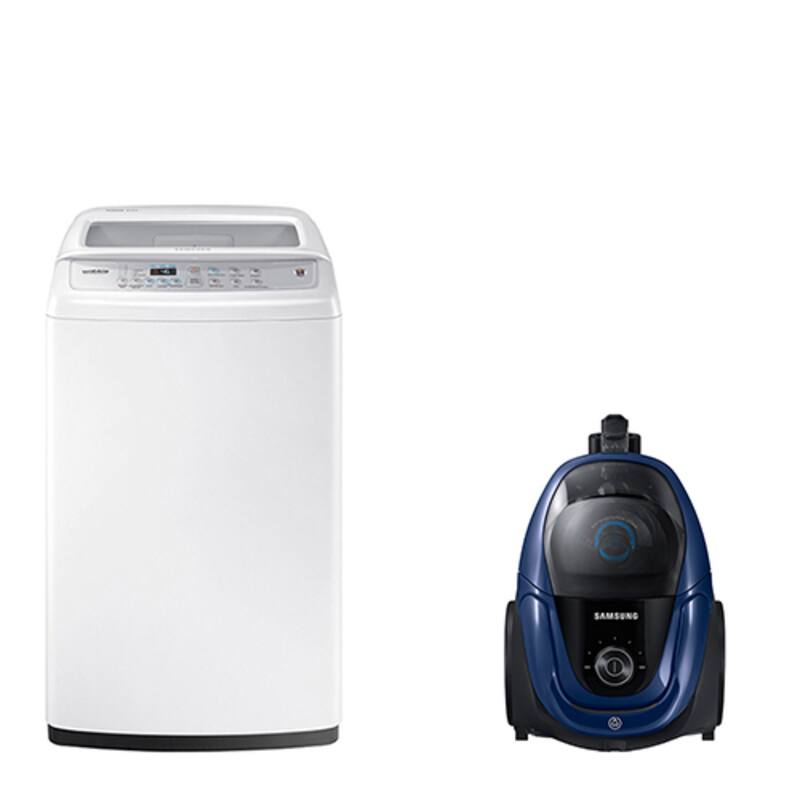 ¿Una lavadora y una aspiradora Samsung juntas al precio de una sola? Es el combo que ofrece Abcdin a los clientes que paguen con su tarjeta. La lavadora soporta cargas de hasta 8 kg, y tiene un sistema de centrifugado más rápido. La aspiradora, por su parte, es ciclónica y tiene una potencia de 1800 W. Precio normal: $271.990.